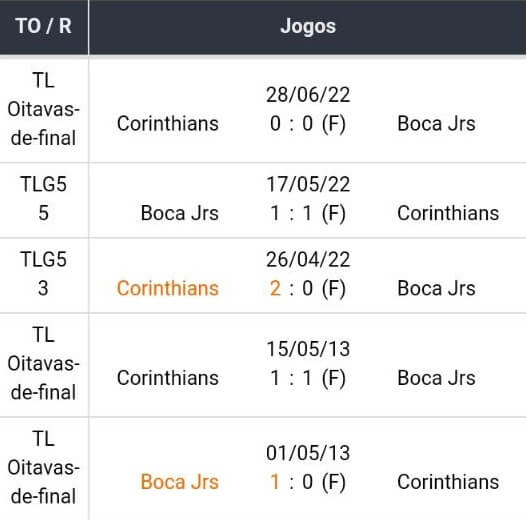 Dados e estatísticas da Apostas Esportivas para apostar no Boca Juniors x Corinthians