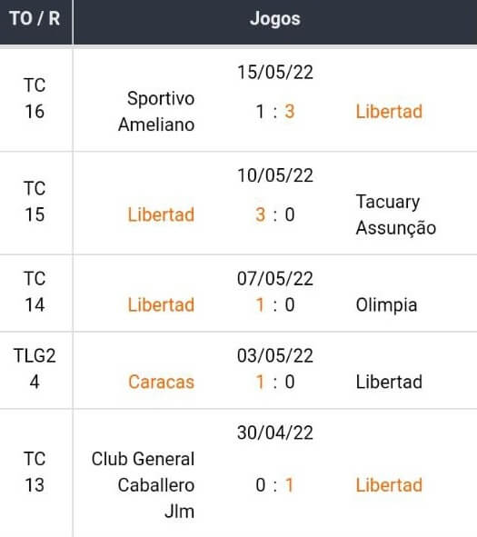 Últimas 5 partidas do Libertad na Betsson Brasil