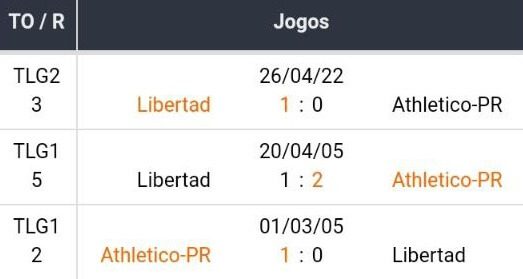 - Essas equipes se encontraram três vezes em sua história. O Athletico Paranaense domina o cartel com duas vitórias, enquanto o Libertad tem uma.