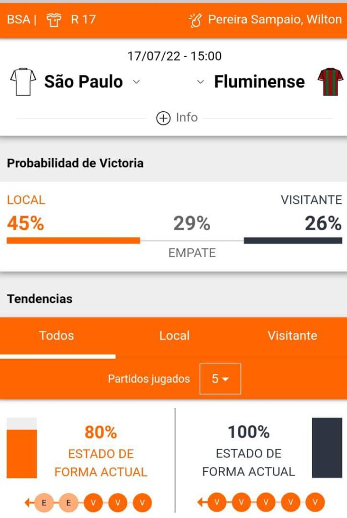 Conforme as estatísticas apresentadas na Betsson Brasil, há 44% de chances de São Paulo vencer, enquanto o Fluminense está previsto em 27%. Apenas 29% são considerados para um sorteio. No entanto, estas estatísticas, com as tendências de forma da equipe, sugerem que se aposte em um empate na metade do tempo. Evite apostar em vencedores e perdedores.