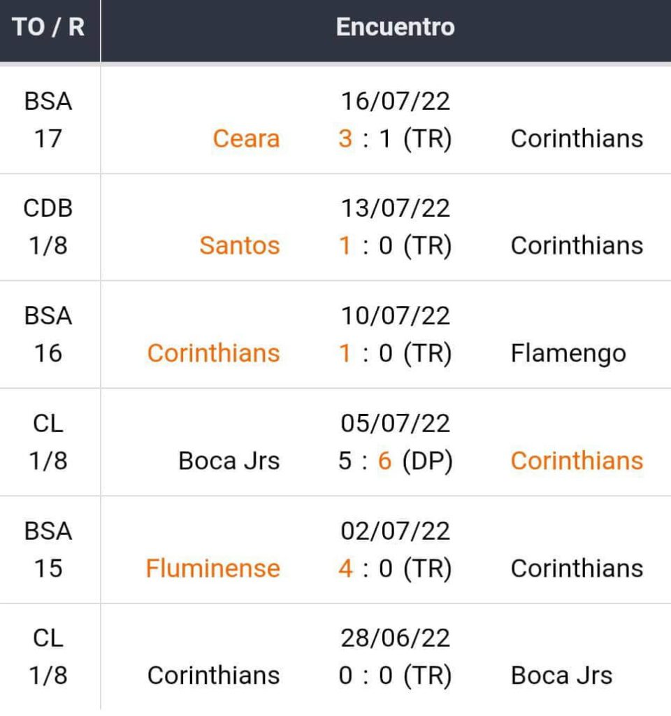 Últimos 5 jogos do Corinthians
