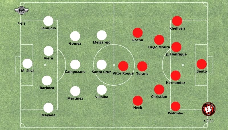 - Goles: Erick 5′, Luis Orejuela 16′, Rómulo Cardozo 23′, Hugo Moura 67′ (ATH); Faltando 73′, Lucas Santana 82′ –p- (BRA)
