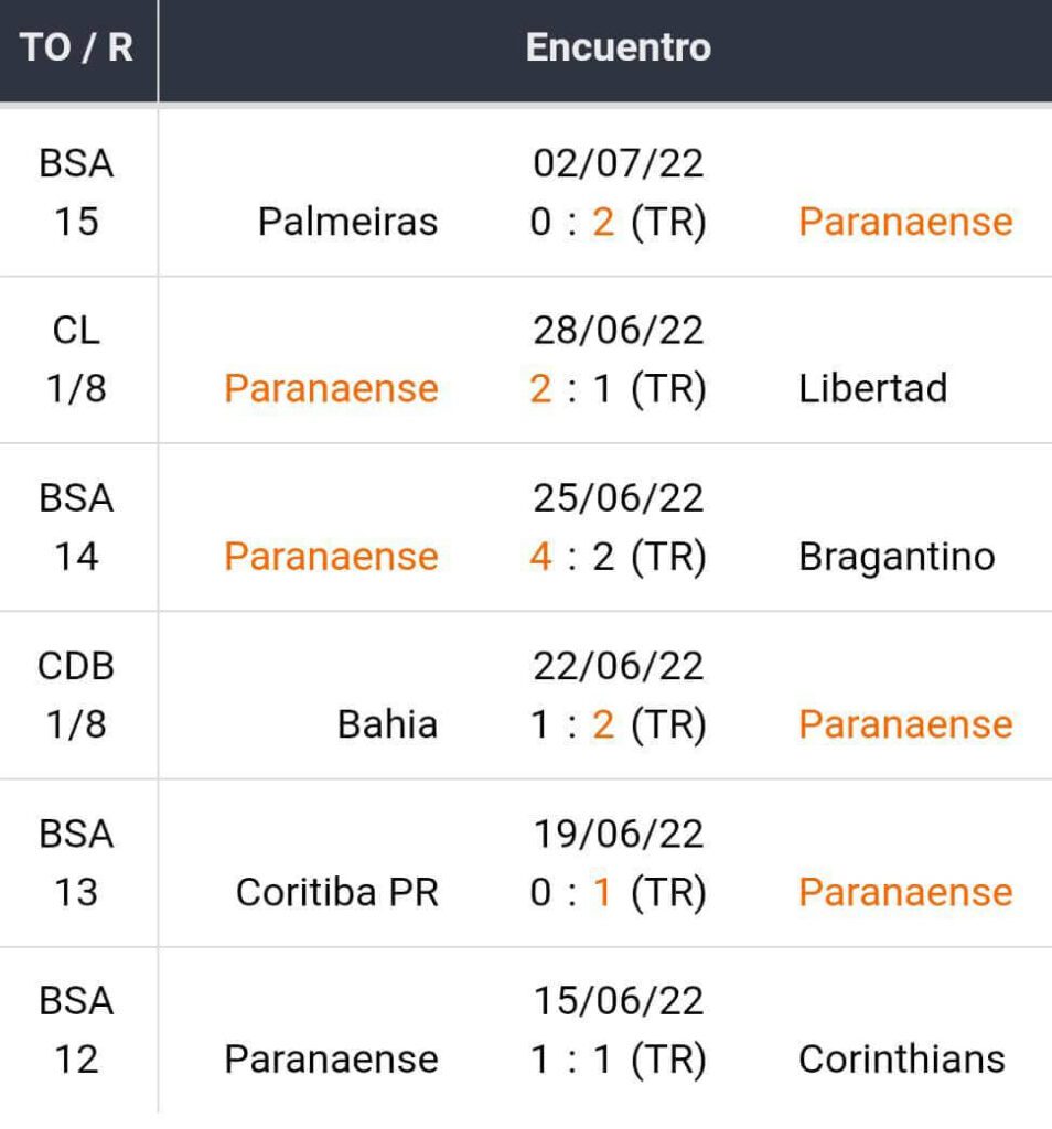 - Nos últimos 10 jogos disputados em todas as competições foram 7 vitórias, 1 empate e apenas uma derrota. Precisamente, essas duas últimas derrotas foram contra o rival de plantão: o Paranaense.