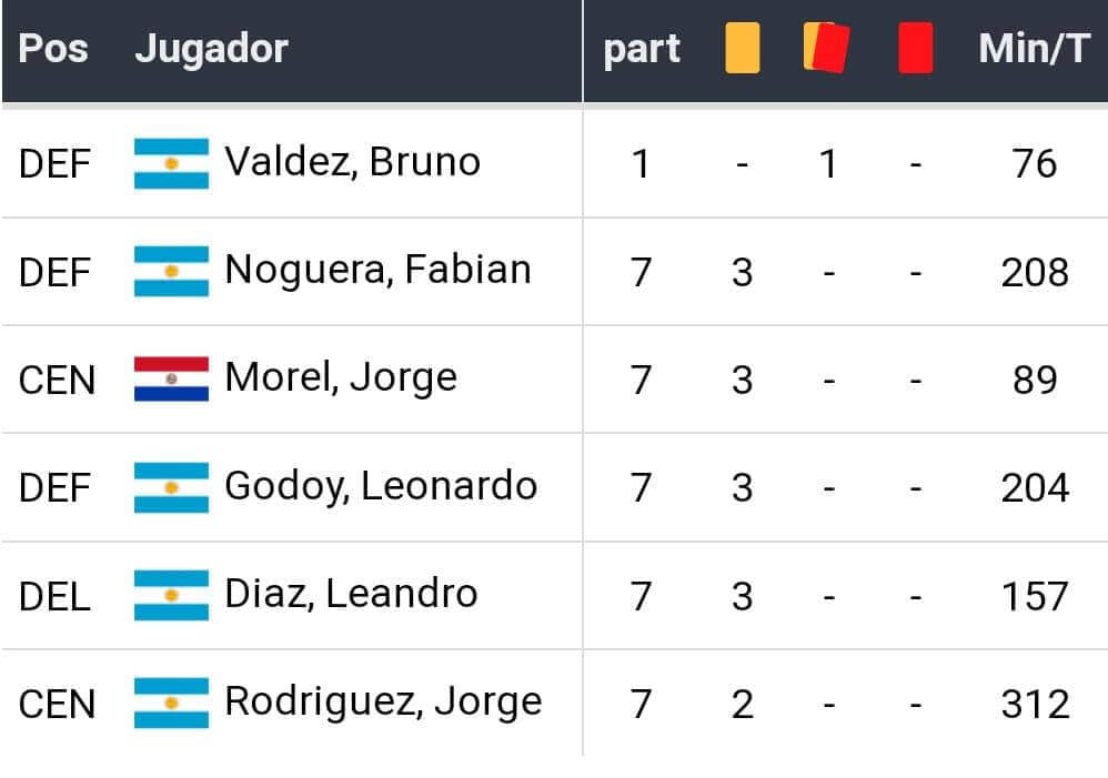 - Noguera é o jogador com o maior número de cartões amarelos da equipe.