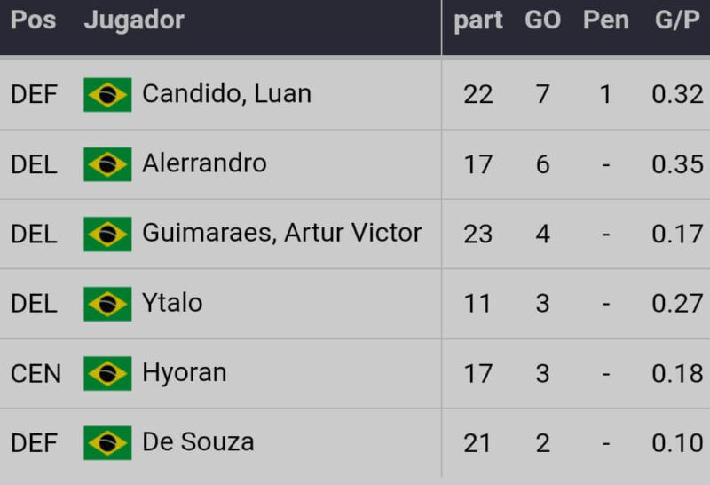 - Com 37 goles a favor, é o quinto melhor ataque do campeonato. Com 34 goles sofridos, é a 16ª defesa das 20 equipes participantes.